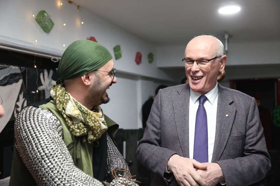 Etkinliğe katılan Odunpazarı Belediye Başkanı Kazım Kurt, gençlerle bir araya gelerek kısa bir konuşma yaptı. Başkan Kurt, gençlere yönelik sosyal, kültürel ve sanatsal etkinliklerin önemine dikkat çekerek, Odunpazarı Belediyesi’nin gençlerin yaşamına dokunan projeleri sürdüreceğini ifade etti. “Yılbaşı geliyor. Gençlik Merkezi’mizdeki arkadaşlarımız da sizlerle erken bir yılbaşı kutlaması yapalım istemiş. Kış Festivali… Odunpazarı’nda festival çok, ama bu festivallere aktif olarak da katılın. 3 D Gençlik Festivali, Cam, Lületaşı, Ahşap ve Seramik Festivali, bunların hepsine katılın. Yılbaşı öncesinde de Odunpazarı’nda Yeni Yıl Pazarımız olacak. Ona da bekleriz. Gençlerin hareketine ihtiyacımız var” diyen Başkan Kurt, gençlere ikametgahlarını Eskişehir’e aldırmaları yönünde çağrı yaptı. “Okuduğunuz, yaşadığınız şehribirlikte yönetelim istiyoruz” diyen Başkan Kurt, gençlerin derslerine çok iyi çalışmasını istedi. Başkan Kurt, “Birinci işiniz sınıf geçmek. Anneleriniz, babalarınız sizleri okumanız için gönderdi. Başarılı öğrenciler olmanızı isteriz. Eskişehir’de sizin rahat yaşayabilmeniz için elimizden geleni yapıyoruz, yapmaya da devam edeceğiz. Sizlere başarılar diliyorum. İyi eğlenceler. Kültürü, sanatı Odunpazarı’nda yaşayın. Şimdiden yeni yılınız kutlu olsun. İyi yıllar diliyorum” dedi.