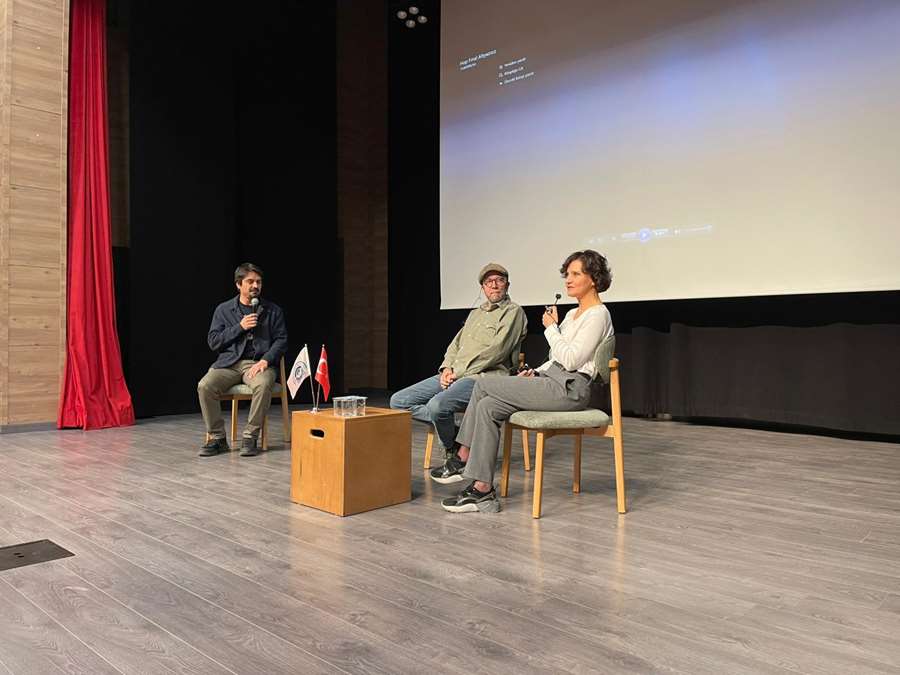 Gösterimin ardından yönetmen Jale İncekol ile oyun sağlayıcı Nedim Buğral’ın katılımıyla bir söyleşi gerçekleştirildi. Moderatörlüğünü yönetmen Sezgin Sönmez’in yaptığı söyleşide, afet sonrası dönemde oyunun bir ihtiyaç ve hak olarak ele alınmasının önemi, sahadaki deneyimler üzerinden paylaşıldı; izleyicilerin soruları yanıtlandı.