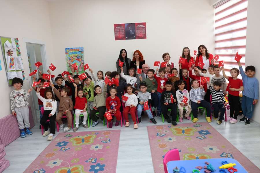 Başkan Kurt ve Şerife Aysel Erkara, ziyaret boyunca çocuklarla yakından ilgilenmeye devam ederken, kreşteki bu buluşma hem minikler hem de büyükler için hafızalarda yer edecek bir gün olarak kayda geçti.