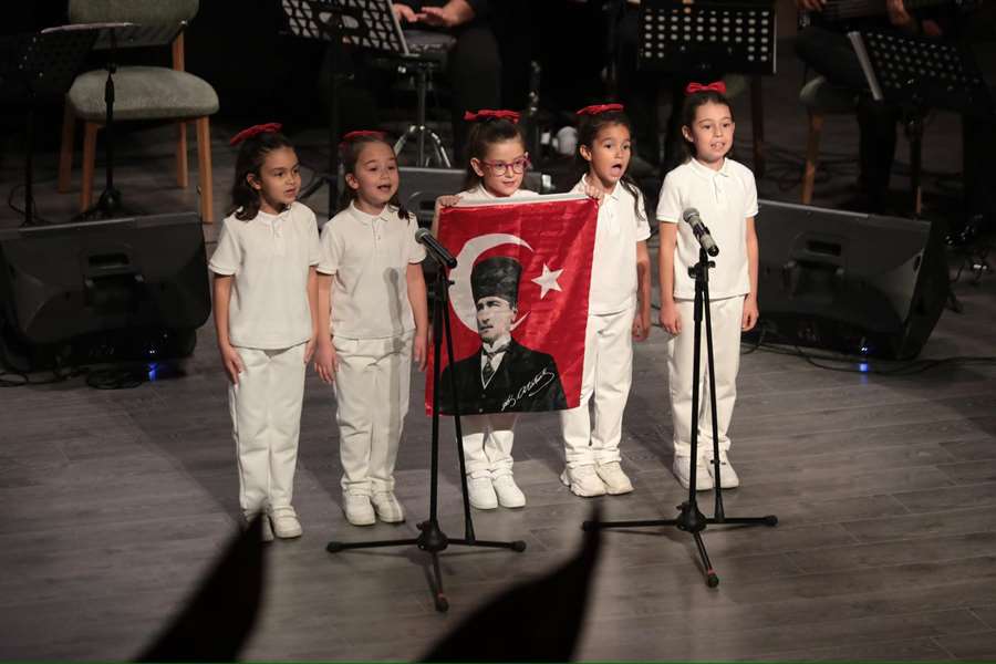 Etkinlikte sanatçılar Gönül Onar ve Ergün Elibaş, solo performanslarıyla izleyenlerden büyük alkış aldı. “Yeminimin Uçları”, “Ankara’nın Taşına Bak”, “Yanık Ömer” ve “Parla” gibi eserlerle Cumhuriyet coşkusu salona yayıldı. Gösteriye, Odunpazarı Belediyesi Kültür ve Sosyal İşler Müdürlüğü Halk Dansları Topluluğu da halk oyunlarıyla renk kattı. Zeybek, Karadeniz ve çeşitli yörelerden halk danslarıyla sahne adeta bir görsel şölene dönüştü. Program, tüm salonun hep birlikte seslendirdiği “10. Yıl Marşı” ve “İzmir Marşı” ile sona erdi.