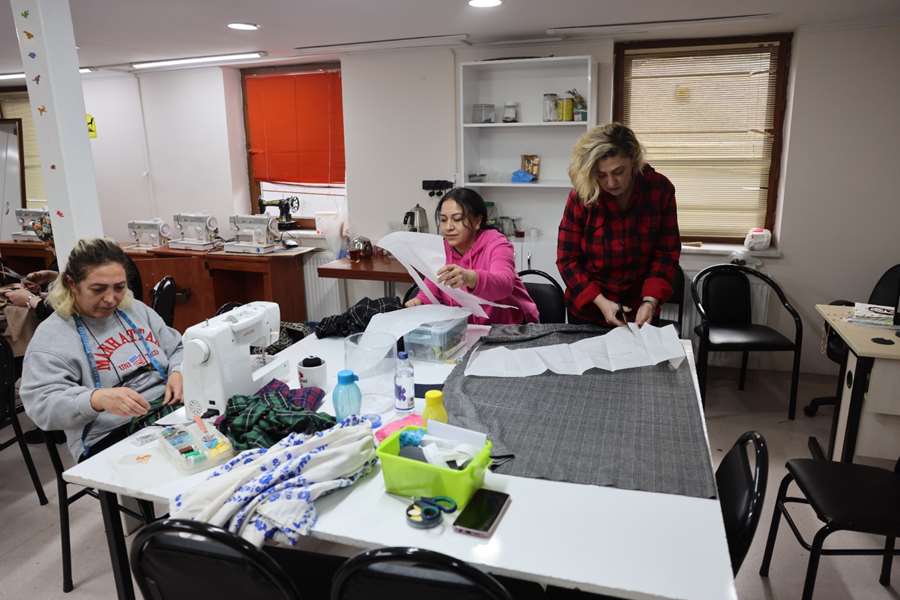 Tamamı kadınların katılımıyla hayata geçirilen atölye, iki grup halinde yürütülüyor. Çarşamba günleri yapılan birinci grupta 15 kadın, perşembe günleri düzenlenen ikinci grupta ise 16 kadın eğitim alıyor. Atölye süresince kadınlar giyim alanında mesleki beceriler edinerek üretim süreçlerine katılıyor.