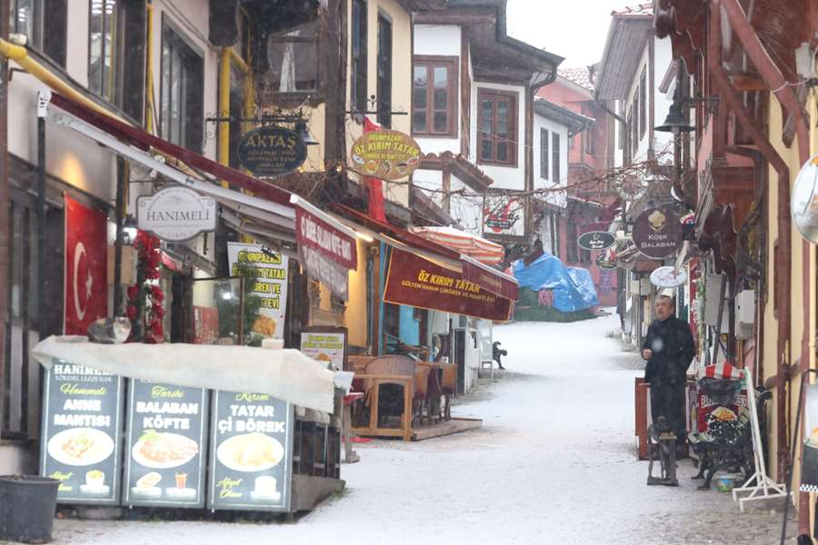 Gündüz saatlerinde etkisini göstermeye başlayan kar yağışı, Eskişehir’i kısa sürede beyaz bir örtüyle kapladı. Kentin en önemli kültürel ve turistik noktalarından biri olan Tarihi Odunpazarı Bölgesi, yağan karla birlikte adeta kartpostallık görüntülere sahne oldu. Bölgedeki tarihi evlerin ve dükkânların çatıları beyaza bürünürken, ortaya çıkan manzara görenleri kendine hayran bıraktı.