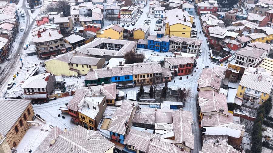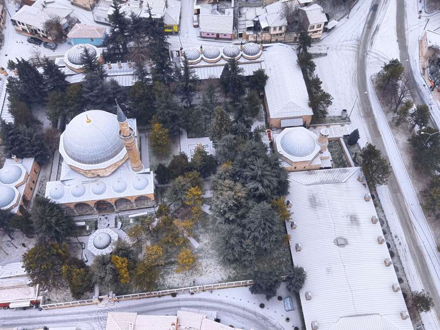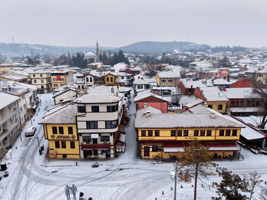 Kar yağışı nedeniyle oluşan bu eşsiz manzara, drone ile havadan görüntülenerek ölümsüzleştirildi. Havadan çekilen görüntülerde, Odunpazarı’nın özgün mimarisi ve tarihi dokusu karla bütünleşerek izleyenlere görsel bir şölen sundu.