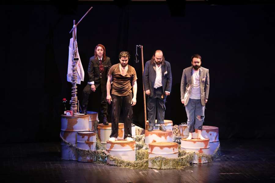 Hasan Polatkan Kültür Merkezi’nde gerçekleşen prömiyer gecesinde, sahnede kurulan yalın düzenin içinde üç karakterin sıkışmışlığı neredeyse elle tutulur hale geldi. Açlık, korku ve hayatta kalma dürtüsü etrafında şekillenen ilişkiler, zaman zaman kara mizahın keskin diliyle yumuşar gibi olsa da, hemen ardından sert bir gerçeklikle yeniden izleyicinin karşısına dikildi. Bu inişli çıkışlı ritim, oyunun en güçlü damarlarından biri olarak gece boyunca etkisini korudu.