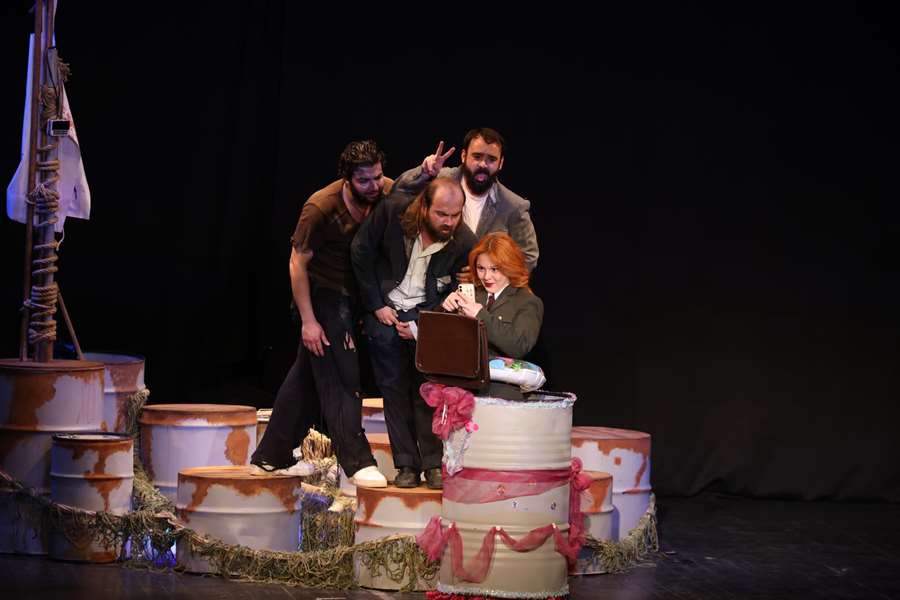 Yönetmen Süleyman Karaahmet, Mrożek’in metnindeki absürd yapıyı bozmadan, aksine onu daha görünür kılan bir sahne dili kurmayı başarmış. Minimal dekor tercihine rağmen sahnede yaratılan atmosfer, karakterlerin çaresizliğini ve giderek daralan seçeneklerini çarpıcı biçimde hissettirdi. Işık ve müzik kullanımı ise bu daralmayı derinleştiren, gerilimi adım adım yükselten unsurlar olarak öne çıktı.