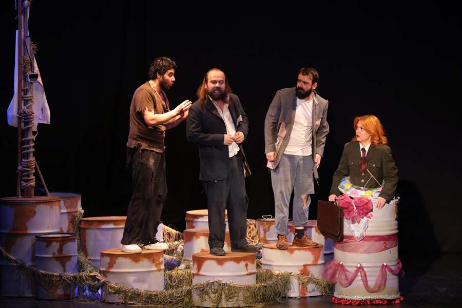 Odunpazarı Belediye Tiyatrosu, yeni oyunu “Açık Denizde”nin prömiyeriyle seyirciyi sahnenin ortasında kurulan dar, sarsıcı bir dünyaya davet etti. Absürd tiyatronun usta kalemi Sławomir Mrożek’in metni, ilk andan itibaren salonu kuşatan bir gerilimle hayat bulurken, izleyiciyi yalnızca bir hikâyeye değil, insan doğasının karanlık kıyılarına doğru bir yolculuğa çıkardı.