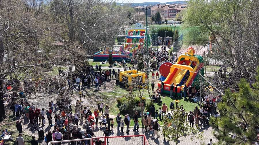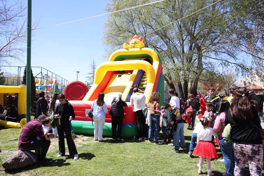 Odunpazarı’nda 23 Nisan Ulusal Egemenlik ve Çocuk Bayramı coşkusu, düzenlenen büyük çocuk şenliğiyle zirveye ulaştı. Kanlıkavak Parkı’nda gerçekleştirilen etkinlikler, yoğun katılımla adeta bayram yerine dönüştü. Gün boyu süren programda çocuklar doyasıya eğlenirken, aileler de bu coşkuya ortak oldu. Şenlik alanı sabah saatlerinden itibaren rengârenk görüntülere sahne oldu. Şişme oyun parkurları, yüz boyama etkinlikleri ve eğlenceli yarışmalar ve konserlerle çocuklar gün boyunca enerjilerini doyasıya harcadı. Alanda kurulan stantlarda mısır, horoz şeker ve pamuk şeker ikram edilirken, OBAK tarafından hazırlanan survivor parkuru da çocukların en çok ilgi gösterdiği etkinliklerden biri oldu.