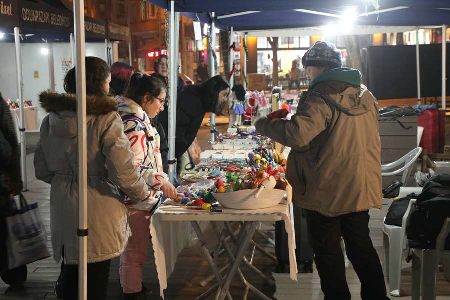 Birbirinden renkli ve güzel bebeklerin, çantaların, takıların, bebek hırka ve patiklerin yanı sıra seramik kupa ve fincanların bulunduğu Yılbaşı Pazarında, Ceren Özdemir Adalar Gençlik Merkezi de stant açtı. Öğrencilere Odunpazarı Belediye Başkanı Kazım Kurt’un yılbaşı hediyesi olan 2 GB internet tanımlı olan kartları dağıtılmakta. Vatandaşların yoğun ilgi gösterdiği Yılbaşı Pazarı, 31 Aralık Cumartesi günü saat 15.00’e kadar açık olacak.