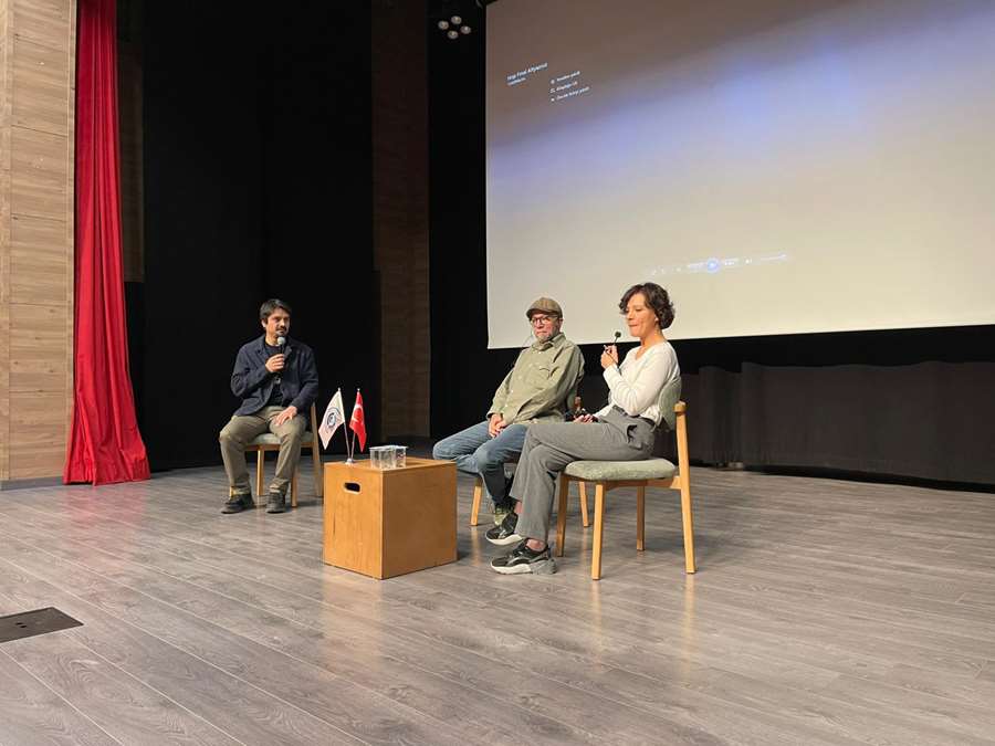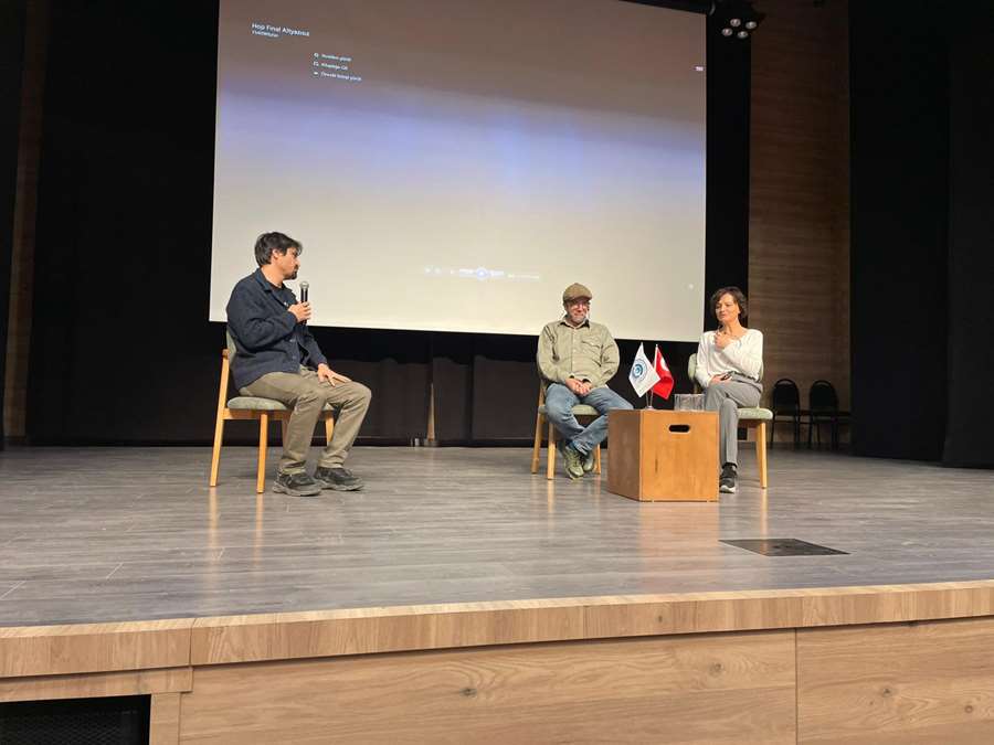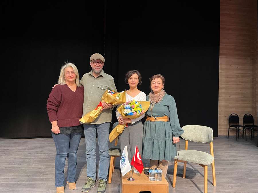 Gösterimin ardından yönetmen Jale İncekol ile oyun sağlayıcı Nedim Buğral’ın katılımıyla bir söyleşi gerçekleştirildi. Moderatörlüğünü yönetmen Sezgin Sönmez’in yaptığı söyleşide, afet sonrası dönemde oyunun bir ihtiyaç ve hak olarak ele alınmasının önemi, sahadaki deneyimler üzerinden paylaşıldı; izleyicilerin soruları yanıtlandı.