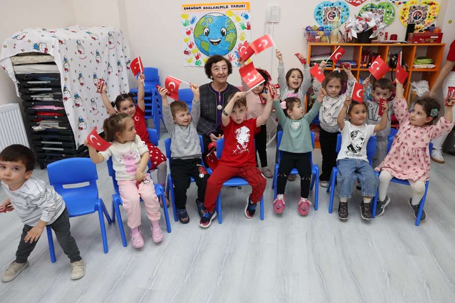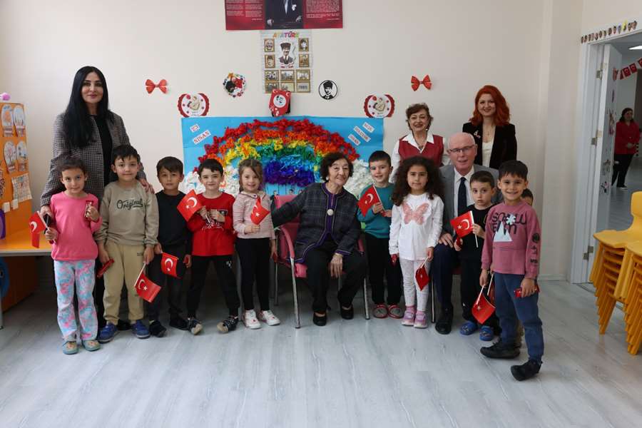 Başkan Kurt ve Şerife Aysel Erkara, ziyaret boyunca çocuklarla yakından ilgilenmeye devam ederken, kreşteki bu buluşma hem minikler hem de büyükler için hafızalarda yer edecek bir gün olarak kayda geçti.