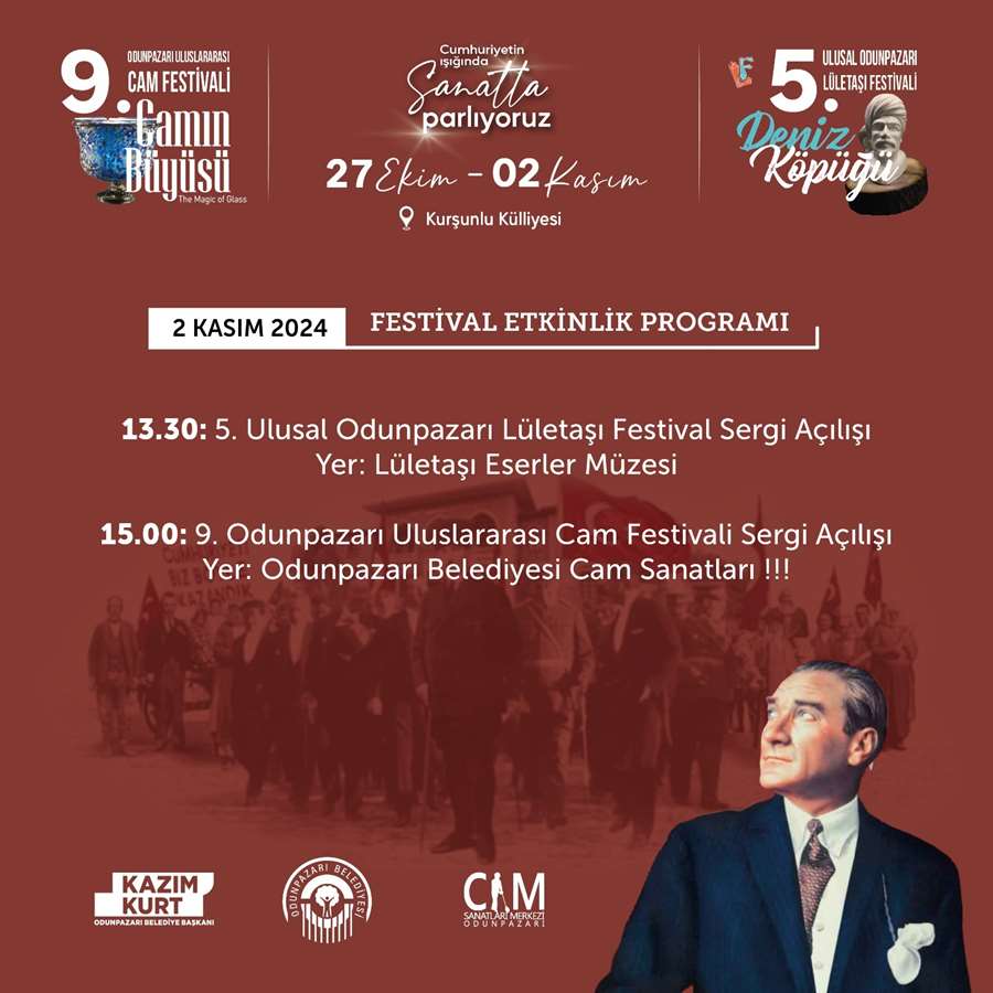 Sanatseverleri ve kültürel mirasa sahip çıkmak isteyen hemşehrilerini gerçekleşecek bu büyüleyici festivallere davet eden Odunpazarı Belediye Başkanı Kazım Kurt, “Cumhuriyetimizin 101. yılını kutladığımız bu anlamlı günlerde, sanatı ve kültürü yücelten iki değerli festivalle sizlerle bir arada olmanın mutluluğunu yaşıyoruz. Lületaşı ve cam, yüzyıllar boyunca bu coğrafyanın zanaatkarlarının ellerinde şekillenmiş, dünyaya Eskişehir’in sanat ve ustalık geleneğini tanıtmıştır. Bu festivaller aracılığıyla, sanatın birleştirici gücünü daha geniş kitlelere ulaştırarak, hem yerel hem de uluslararası sanatçılarımızı ve zanaatkarlarımızı desteklemeye devam ediyoruz. Geçmişi ve geleceği buluşturan bu eşsiz etkinliklerin, sanatseverlerin gönüllerinde iz bırakacağına inanıyorum