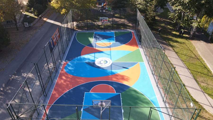 Sahanın zemininde yapılan iyileştirmelerle eski, bozulmuş asfalt kaplama kaldırılarak yerine daha dayanıklı beton zemin döşendi. Yeni zemin, estetik bir görünüm sağlamak amacıyla akrilik boyayla renklendirildi ve basketbol sahasına modern bir tasarım kazandırıldı.
