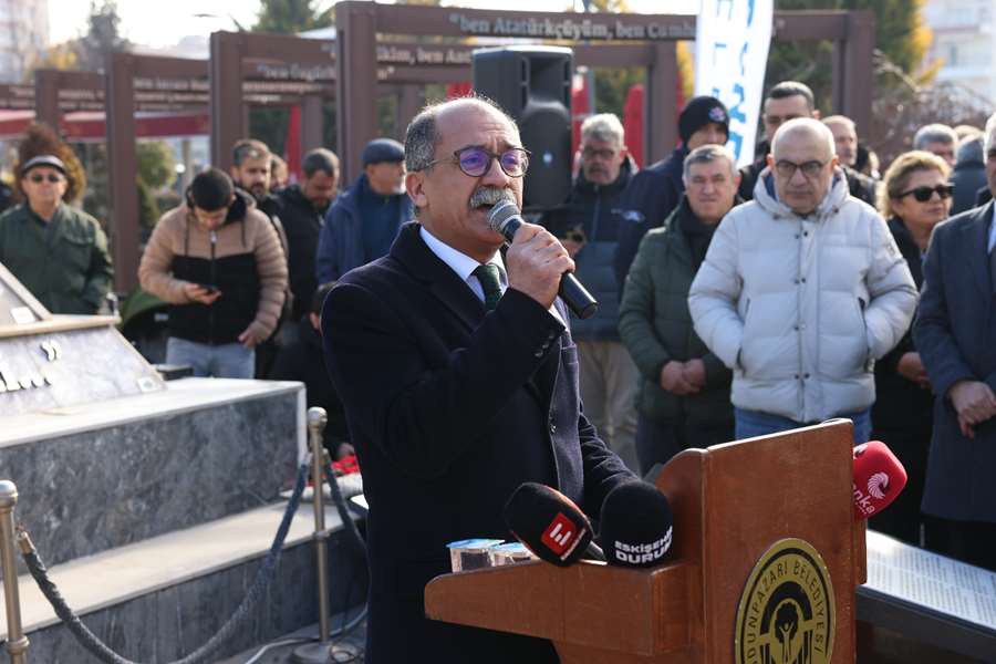 Törende konuşma yapan isimlerden biri de CHP Eskişehir İl Başkanı Talat Yalaz oldu. Uğur Mumcu’nun 32 yıl önce bugün Türkiye'nin içine düştüğü karanlığı gördüğünü söyleyen Yalaz, Mumcu’nun Türkiye'nin tam da bugün olduğu haliyle açlığa, sefalete mahkûm edilmiş; mutsuz insanların yaşadığı bir ülke olmaması için o günden tespitlerde bulunduğuna dikkat çekti. Yalaz, “O günden bugüne Türkiye çok değişmiştir, kötüye gitmiştir. Üzülerek görüyoruz ki Uğur Mumcular'ın o gün korktukları her şey maalesef bugün başımıza gelmiştir. Ama değişmeyen şey, o gün mücadele edenlerin, Uğur Mumcu'nun, bu karanlık günleri engellemek için ortaya koyduğu yol haritasıdır, reçetedir. Reçete hiçbir zaman değişmemiştir. Uğur Mumcu, Atatürkçülük her şeyden önce devrimciliktir diyor. O gün için arzulanan, istenen örgütlü mücadele, aydınlık yarınlara inancı olan insanların kenetlenip, kol kola girip, karanlığı yenmek için vermek istediği mücadele bugün de geçerliliğini korumaktadır. O yüzden ben bu anmanın sadece bir anma değil, aynı zamanda bu içinde bulunduğumuz mücadele uğruna hayatını veren Uğur Mumcu'ya bir söz verme günü olması gerektiğini düşünüyorum. Bugün Türkiye'nin karanlıktan çıkması için o gün öngörülen mücadeleyi vermenin tam da zamanıdır. Uğur Mumcu'ya yapılacak en iyi, en doğru, en anlamlı anmada bu uğurda yürekten söz vermektir. Ant olsun ki Uğur Mumcu, cellatlarından uzun yaşayacaktır. Hem cellatlarından hem de cellatlarını cesaretlendirenlerden, o cellatların açmak istediği yolları bugün için inşa etmek istedikleri Türkiye'yi yönetenlerden de uzun yaşayacaktır. Uğur Mumcu, bizler olduğumuz sürece, Atatürk'ün yolunda tam bağımsızTürkiye için, Uğur Mumcular'ın aydınlattığı yolda yürüdüğümüz sürece, yaşamaya devam edecektir. Ve inanıyorum ki yakın bir gelecekte hepimiz bu anmayı Uğur Mumcu'nun o gün arzu ettiği ülkeyi kurmak adına iktidar meşalesini elimizde tutuyorken yapacağız” dedi.