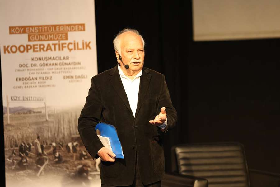 Panelin ilk konuşmacısı Eğitimci Emin Dağlı oldu. “Köy Enstitülerinde Eğitim Anlayışı ve Kooratif Anlayışı” ile ilgili konuşan Dağlı, Cumhuriyet devrimlerinin en önemlisinin Köy Enstitülerinin kurulması olduğunu belirtti. Türkiye’de yapılan devrimin dünyada eşi, benzeri az olan devrim olduğunu söyleyen Dağlı, köy enstitülerinin eğitiminin bugün ile kıyaslandığı arada çok fark olduğunu kaydetti. Köy Enstitülerinde iş içinde eğitimde yapıldığını vurgulayan Dağlı, “Her enstitünün bir arazisi vardı. İnsanlar, tarımın içindeydi. Çocuklar da o tarımın içinde okudular, öğrendiler; aynı zamanda da çalıştılar. Örneğin hala bizim programlarımıza olmayan Karadeniz’de balıkçılık dersi vardı. Akdeniz’de narenciye ürünleri yetiştirme dersi vardı. Kars’ta hayvancılık dersi vardı. Derslerin hepsi de uygulamalı yapılıyordu” dedi.