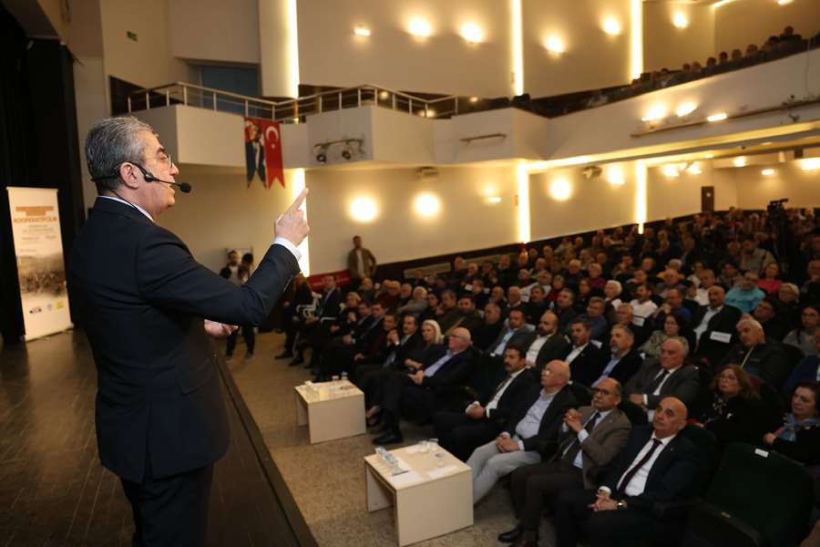 Panelin ikinci konuşmacısı olan Erdoğan Yıldız ise “Günümüz Kooperatifçiliği ve Yerel Yönetimler” konusunu masaya yatırdı. Ömrünün 25 yılını kooperatifçilik hareketine verdiğini belirten Yıldız, kırsal kalkınmanın ve gıda güvenliğinin, gıda fiyatlarının enflasyona etkisinin mutlaka kooperatifçilik eliyle mümkün olduğunu düşünüyorum” şeklinde konuştu. Kooperatifçiliğin Türkiye’deki tarihini anlatan Yıldız, 80 ihtilalinden sonra Türkiye’de çok fazla kooperatif kurulduğunu kaydetti. Yıldız, o dönemde Avrupa’daki en yüksek kooperatif sayısının Türkiye’de olduğunu vurguladı. Kooperatiflerin nicelik olarak çok olduğunu ancak nitelik olarak hiç olmadığına dikkat çeken Yıldız, “Türkiye’de başarılı kooperatifçiliği saysak bir elin 5 parmağını geçmez” dedi. Yıldız, konuşmasında neden böyle sorusuna da cevap aradı. Tüketim kooperatiflerinin geliştirilmesi gerektiğinin altını çizen Yıldız, “Köy kalkındırma kooperatifleri köyde üretim yapacak, tarım kredi kooperatifleri bu kooperatiflere finansman sağlayacak, tüketim kooperatifleri de köylerde kooperatiflerin ürettiği ürünleri pazarlayacak. Üretimden tüketime giden yolun kestirmesi, bu. Ne finansman, ne üretim ne de tüketim sorunu kalıyor” dedi.