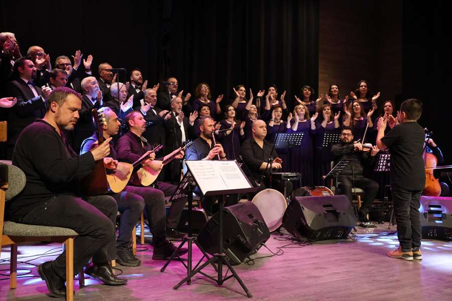 Türk Halk Müziği Koro Konseri, Şef Kenan Pekgöz yönetiminde Anadolu’nun zengin ezgilerini dinleyicilerle buluşturdu. Sunuculuk Atölyesi ve Halk Oyunları Ekibi’nin katkılarıyla zenginleşen program, yalnızca bir konser değil; kültürün, sözün ve ritmin iç içe geçtiği özel bir buluşmaya dönüştü. Anadolu’nun dört bir yanından derlenen türküler, salonu dolduran izleyiciler tarafından coşkuyla karşılandı; kimi zaman hüzünlü, kimi zaman neşeli melodiler, ortak hafızada yankı buldu.