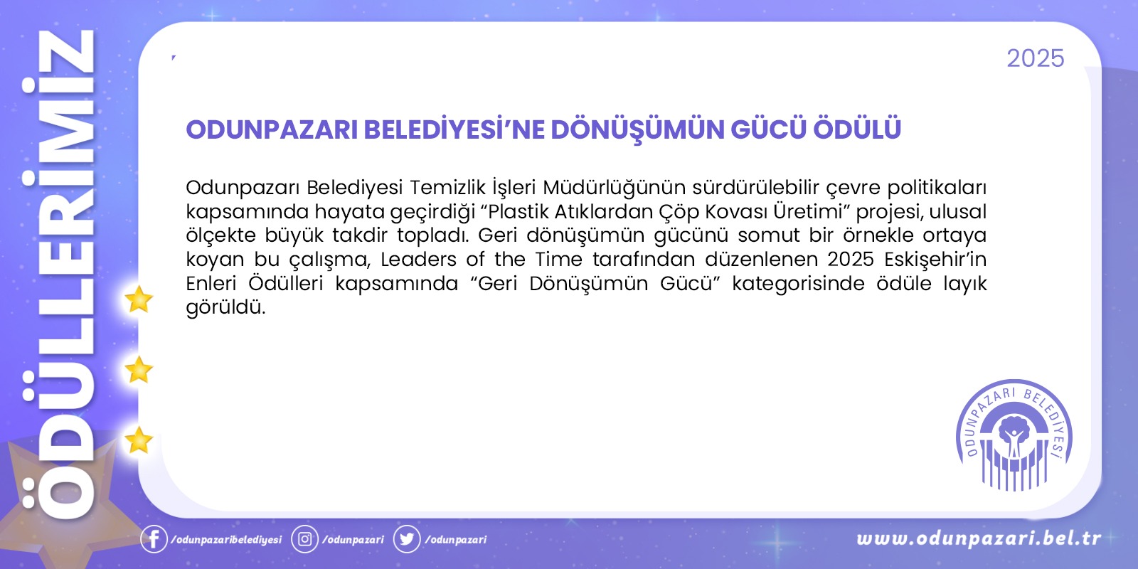 ODUNPAZARI BELEDİYE BAŞKANIDeğerli hemşehrilerim, Çağımız internet çağı ve yaşadığımız salgın ile online işlemler daha da önem kazandı. Yeniden tasarlanan Odunpazarı Belediyesi web sitesi ile işlemlerinizi online ortamda daha kolay yapacak; dilek, şikayet ve taleplerinizi tek bir tuşla bizlere bildirebileceksiniz.